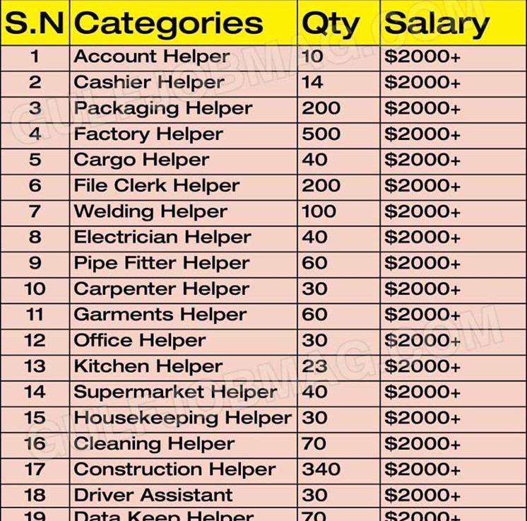 Excellent Salary Package + Overtime. (Salary Package = $ 2000 – $3500 dollar per month)