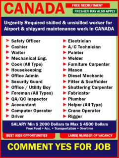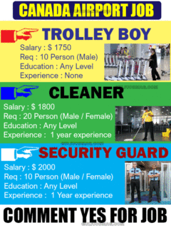 Canada Airport Job Offer – CANADA Posted on by admin We offer 100 % Free visa & Free Ticket ! No service charges at all. Open for all nationality. Click and submit your CV now !!