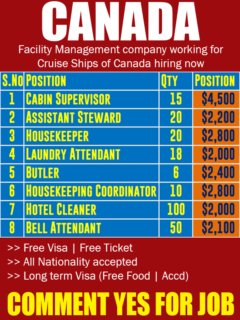 Cruise Ship job is your dream job for CANADA Posted on by admin Salary $ 3500+ job in CANADA cruise ship